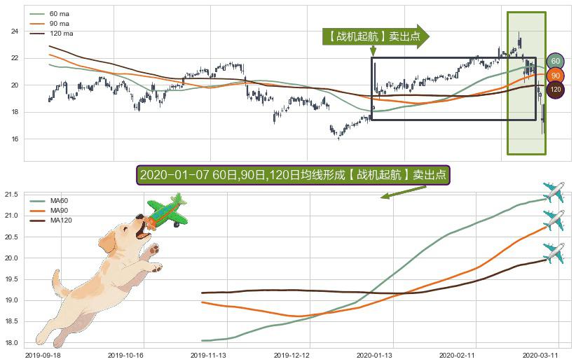 形态多维评估: ⚀ 2019-11-05日-2020-03-06日显现 60日-90日-120日均线 【战机起航】卖出点 看空信号,后市看跌,卖出