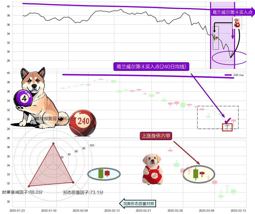 | 4 🅚:降势受阻 ➕ 🎢:葛兰威尔第④买入点买入点信号形成后,猜想后续走势持续反弹上升(均值回复) ☞ 看多信号 ⇥ 【均线】交织【🅚线】⇥ 综合量化分数: 51 | > |