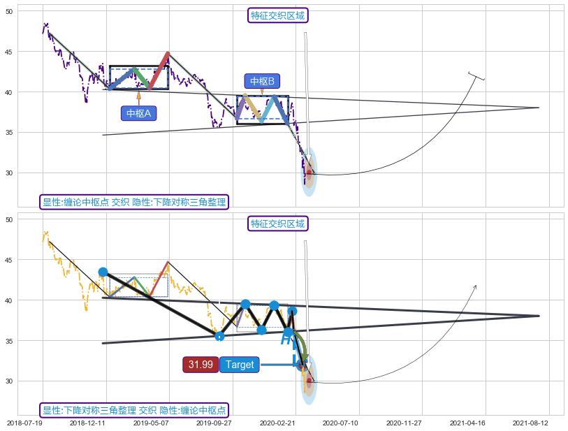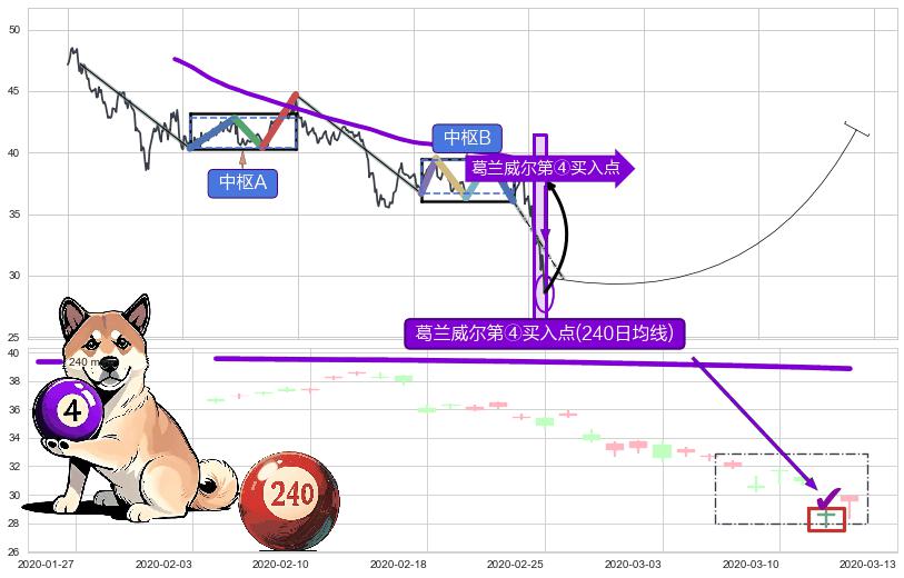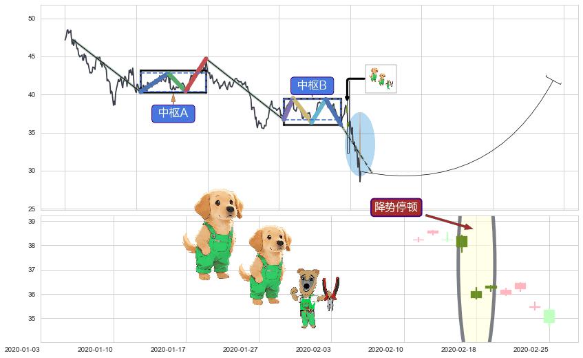 ➢ 【中枢B】:2019-10-08-2020-02-03,中枢由5笔构成,共81交易日, ZG=39.37, ZD=36.68
