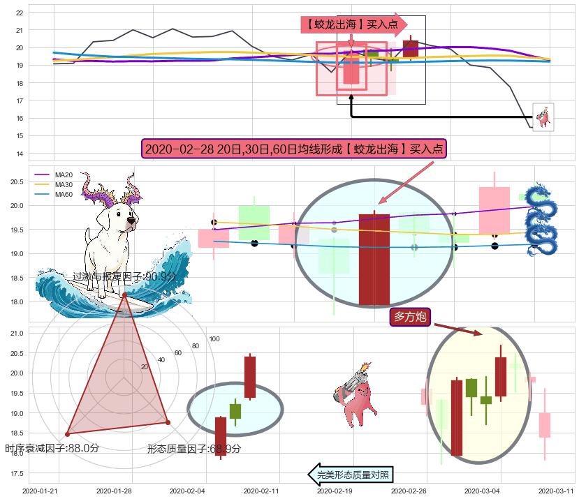 | 3 🅚:两红夹一黑 ➕ 🎢:【旱地拔葱】买入点均线组合买入点信号形成后,猜想后续向上脱离整理形态,持续突破上升 ☞ 看多信号 ⇥ 【均线】交织【🅚线】⇥ 综合量化分数: 51 | > |