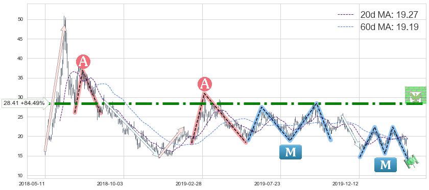 ♘ 阻力价格位28.41,可信任强度93.08%,距离最后交易2020-03-13形成的收盘价格15.40相差 +84.49%
