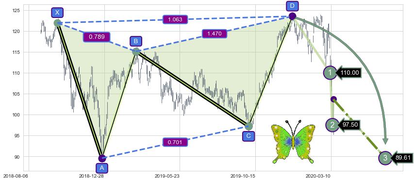 ➣ 已完成【蝴蝶】形态起点X: 2018-09-28, 终点D: 2019-12-24, 共312交易日