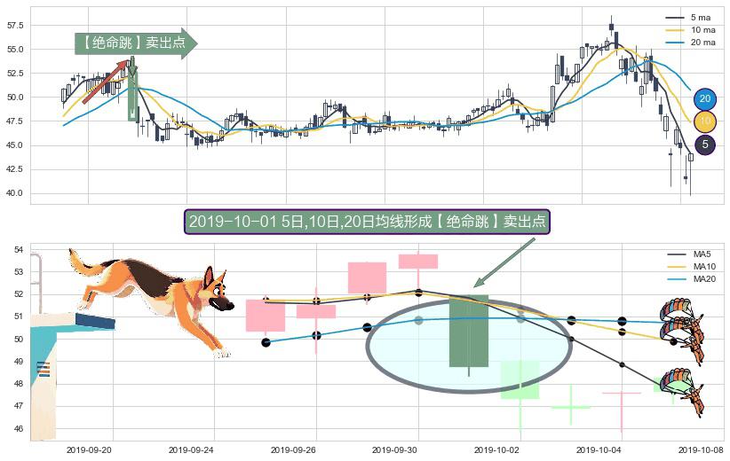 形态多维评估: ⚀ 2019-10-01日显现 5日-10日-20日均线 【绝命跳】卖出点 看空信号,后市看跌,卖出