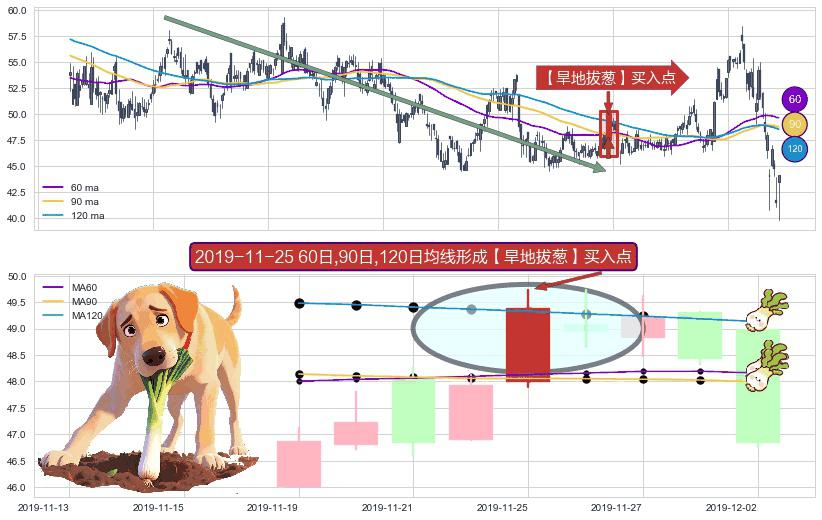 ⚄ 短期均线MA60上穿中期均线MA90形成的交叉是标准 黄金交叉