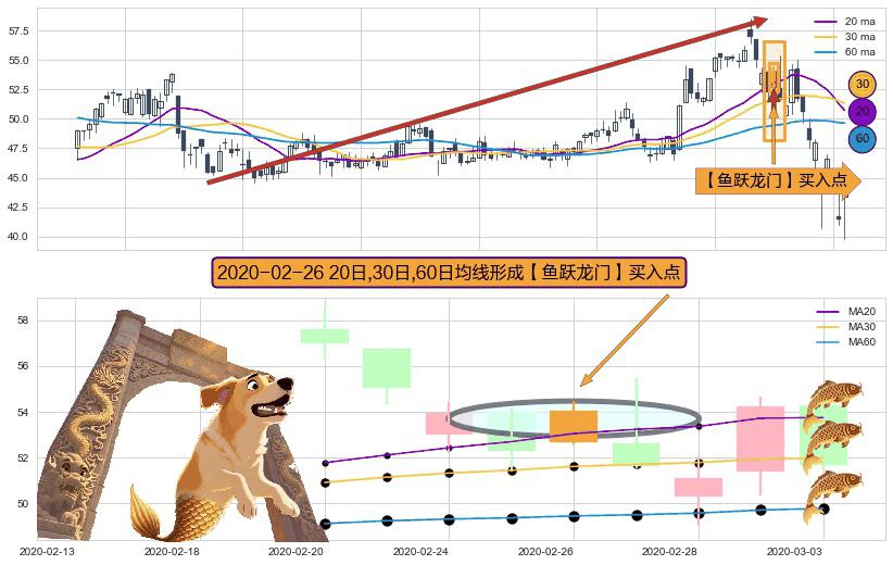 形态多维评估: ⚀ 2020-02-26日显现 20日-30日-60日均线 【鱼跃龙门】买入点 看多信号,后市看涨,买入