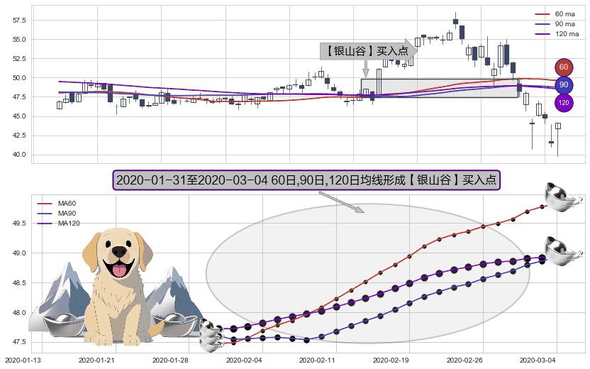 形态多维评估: ⚀ 2020-02-03-日至2020-03-04-日显现 60日-90日-120日均线 【银山谷】买入点 看多信号,后市看涨,买入