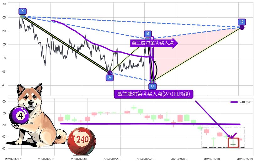 ➣ D点拟合预测价格61.38,距离最后交易收盘价格44.12相差 +39.13%