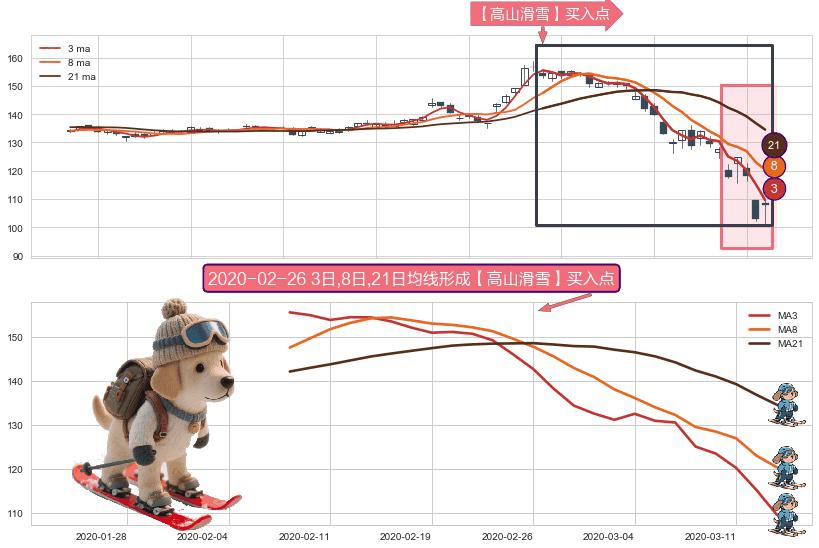 形态多维评估: ⚀ 2020-02-07日-2020-03-13日显现 3日-8日-21日均线 【高山滑雪】买入点 看多信号,后市看涨,买入