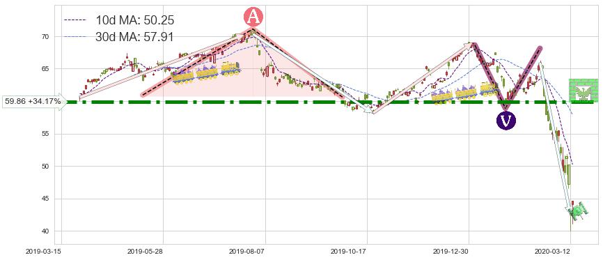 ♘ 阻力价格位59.86,可信任强度86.67%,距离最后交易2020-03-13形成的收盘价格44.62相差 +34.17%