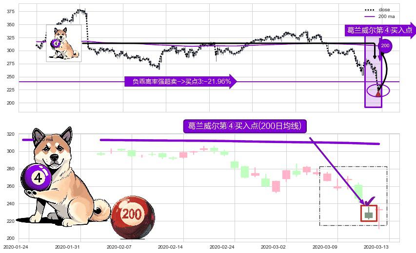 ⚀ 2020-03-12-日显现 葛兰威尔均线 200日均线 第④买入点 下降趋势均值回复的短线反弹信号,后市看涨,买进信号