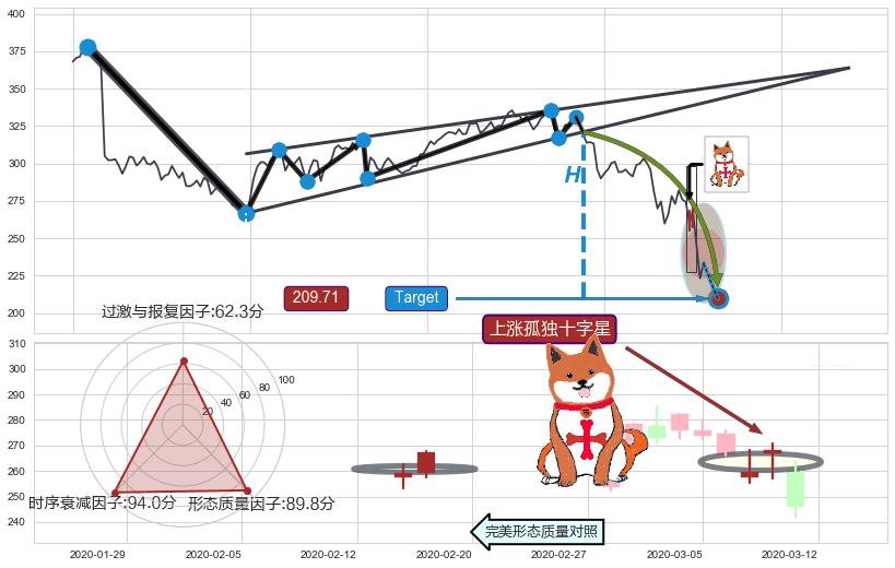 ➢ 【卖1】: 激进型 卖点→(2020-03-11: 259.27 )形成突破【扩散】三角形反转【反转】形态