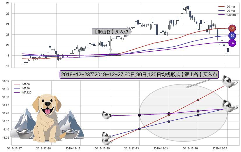形态多维评估: ⚀ 2019-12-24-日至2019-12-27-日显现 60日-90日-120日均线 【银山谷】买入点 看多信号,后市看涨,买入