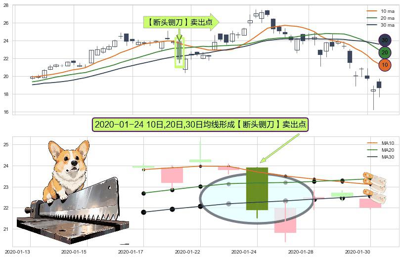 形态多维评估: ⚀ 2020-01-24日显现 10日-20日-30日均线 【断头铡刀】卖出点 看空信号,后市看跌,卖出
