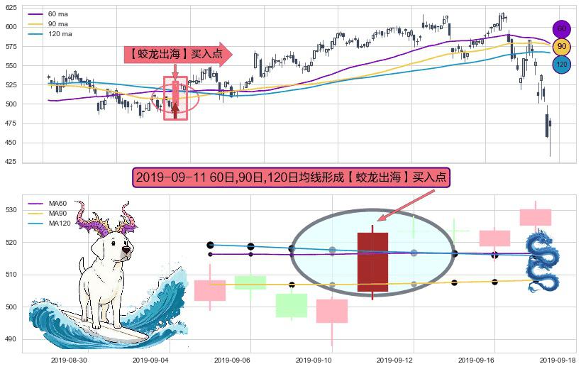 ⚀ 2019-09-11日显现 60日-90日-120日均线 【蛟龙出海】买入点 看多信号,后市看涨,买入