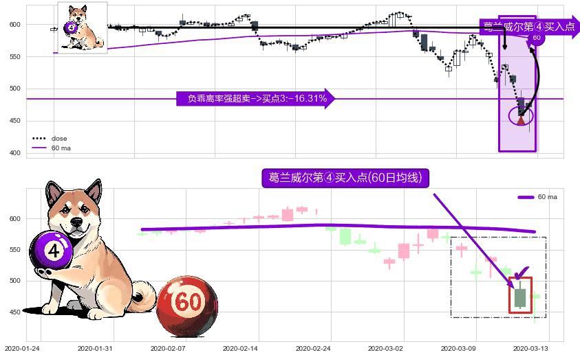 ⚀ 2020-03-12-日显现 葛兰威尔均线 60日均线 第④买入点 下降趋势均值回复的短线反弹信号,后市看涨,买进信号