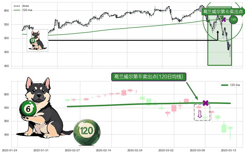 ⚀ 2020-03-06-日显现 葛兰威尔均线 120日均线 第⑥卖出点 走势反转见顶信号,后市看跌,卖出信号