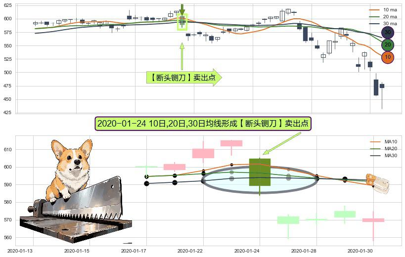 ⚀ 2020-01-24日显现 10日-20日-30日均线 【断头铡刀】卖出点 看空信号,后市看跌,卖出