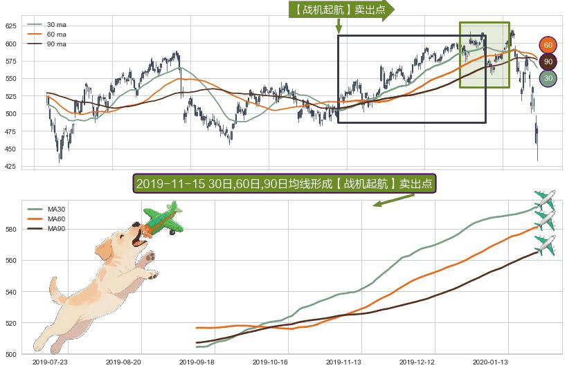 ⚀ 2019-09-11日-2020-01-24日显现 30日-60日-90日均线 【战机起航】卖出点 看空信号,后市看跌,卖出