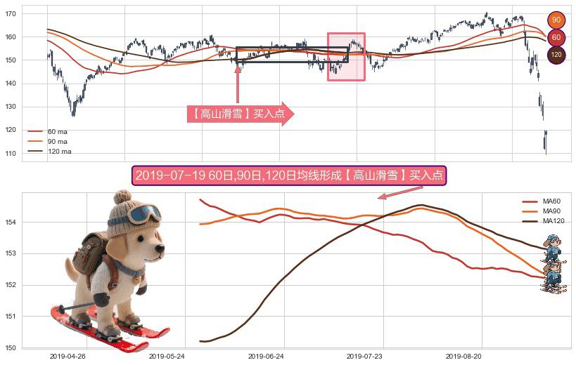 形态多维评估: ⚀ 2019-05-30日-2019-09-09日显现 60日-90日-120日均线 【高山滑雪】买入点 看多信号,后市看涨,买入