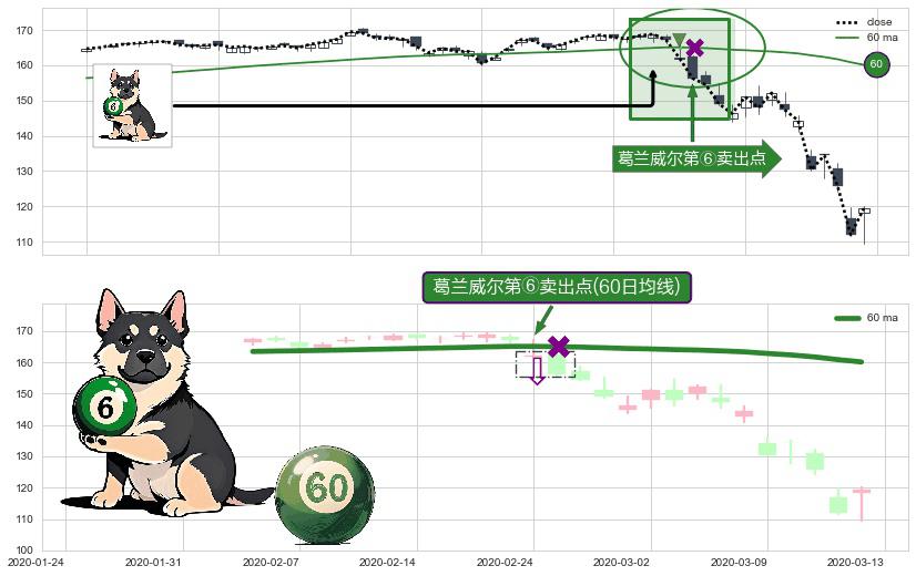 形态多维评估: ⚀ 2020-02-24-日显现 葛兰威尔均线 60日均线 第⑥卖出点 走势反转见顶信号,后市看跌,卖出信号