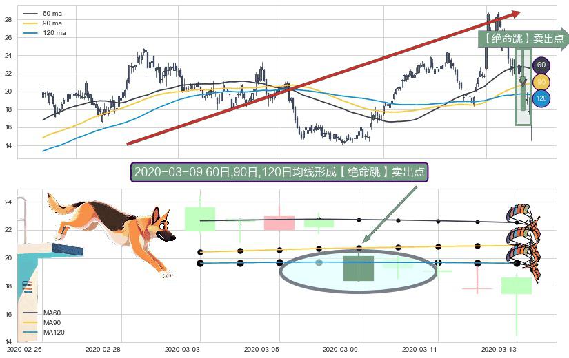 形态多维评估: ⚀ 2020-03-09日显现 60日-90日-120日均线 【绝命跳】卖出点 看空信号,后市看跌,卖出