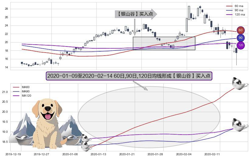 形态多维评估: ⚀ 2020-01-10-日至2020-02-14-日显现 60日-90日-120日均线 【银山谷】买入点 看多信号,后市看涨,买入
