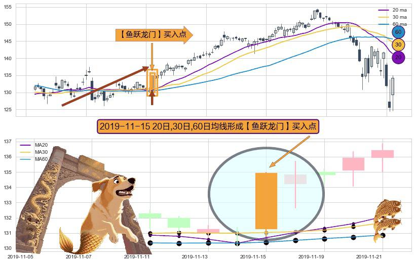 形态多维评估: ⚀ 2019-11-15日显现 20日-30日-60日均线 【鱼跃龙门】买入点 看多信号,后市看涨,买入