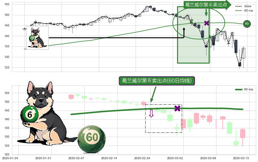 形态多维评估: ⚀ 2020-02-24-日显现 葛兰威尔均线 60日均线 第⑥卖出点 走势反转见顶信号,后市看跌,卖出信号