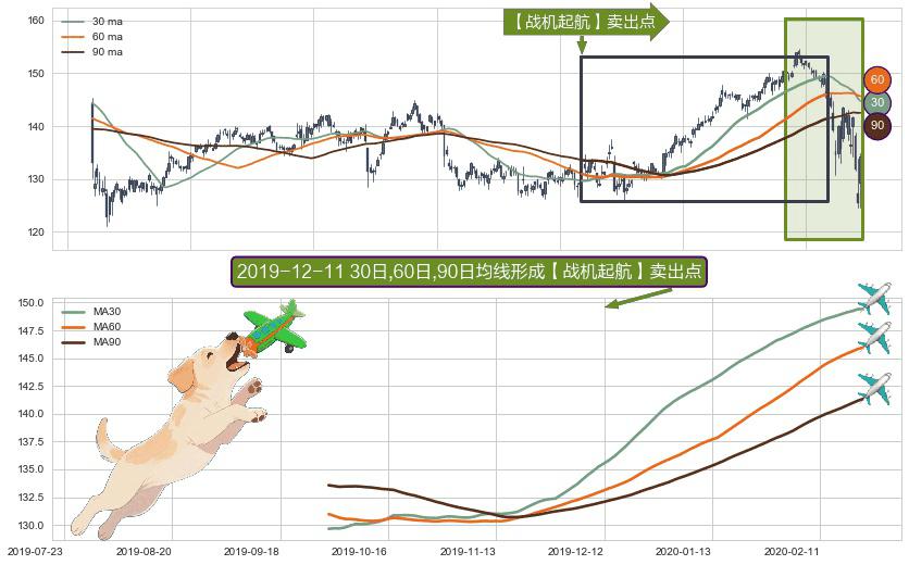形态多维评估: ⚀ 2019-10-01日-2020-02-24日显现 30日-60日-90日均线 【战机起航】卖出点 看空信号,后市看跌,卖出