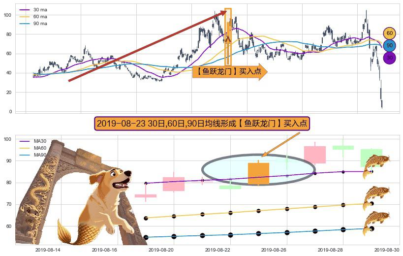 形态多维评估: ⚀ 2019-08-23日显现 30日-60日-90日均线 【鱼跃龙门】买入点 看多信号,后市看涨,买入