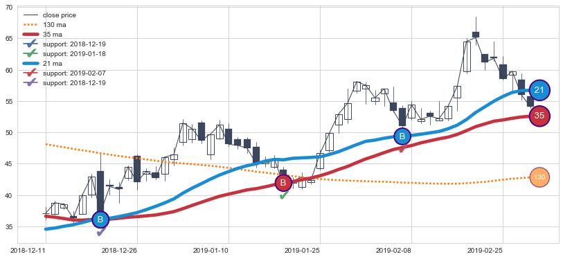 上涨趋势2018-12-11-2019-02-28,均线35, 21确认关键支撑3处