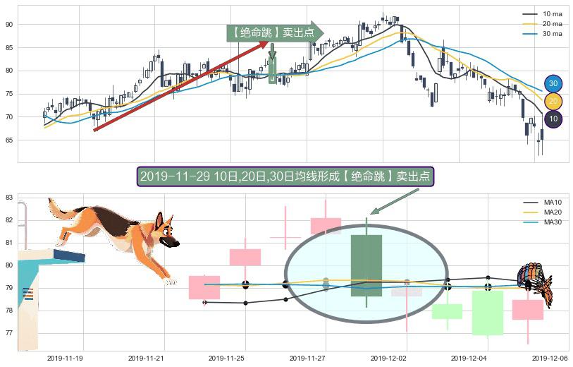 形态多维评估: ⚀ 2019-11-29日显现 10日-20日-30日均线 【绝命跳】卖出点 看空信号,后市看跌,卖出