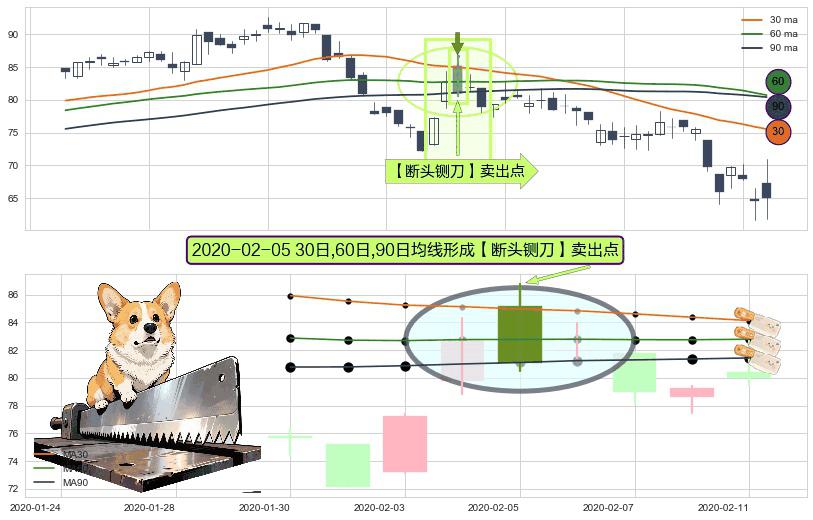 形态多维评估: ⚀ 2020-02-05日显现 30日-60日-90日均线 【断头铡刀】卖出点 看空信号,后市看跌,卖出