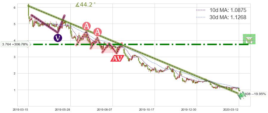 ♘ 阻力价格位3.764,可信任强度95.74%,距离最后交易2020-03-13形成的收盘价格0.9254相差 +306.78%