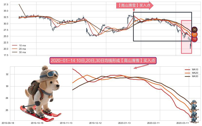 形态多维评估: ⚀ 2019-11-13日-2020-03-13日显现 10日-20日-30日均线 【高山滑雪】买入点 看多信号,后市看涨,买入