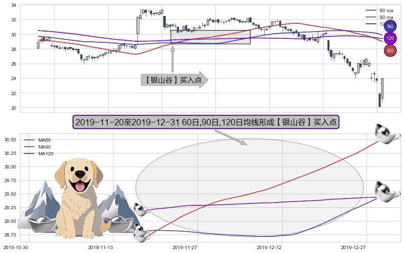 形态多维评估: ⚀ 2019-11-21-日至2019-12-31-日显现 60日-90日-120日均线 【银山谷】买入点 看多信号,后市看涨,买入