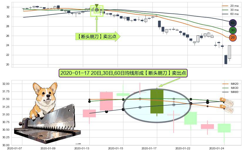 形态多维评估: ⚀ 2020-01-17日显现 20日-30日-60日均线 【断头铡刀】卖出点 看空信号,后市看跌,卖出