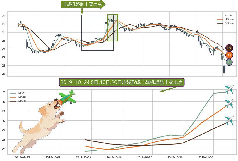 形态多维评估: ⚀ 2019-10-08日-2019-11-08日显现 5日-10日-20日均线 【战机起航】卖出点 看空信号,后市看跌,卖出