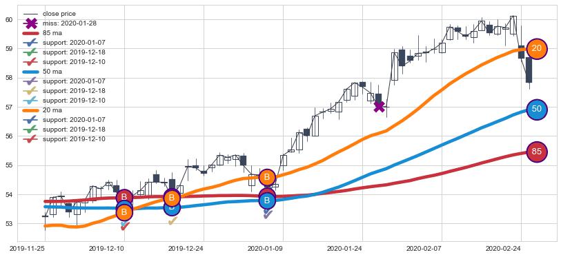 ⚃ 在破位点附近ma走势明显平稳迹象,稍后的走势中ma下垂迹象也出现,信号【可信度中等偏上】