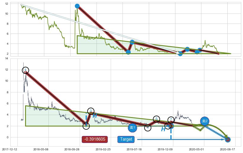 ➣ 最小中继整理跌幅→𝐇: 2.392 (下侧直角边第一支撑点②与斜边垂直距离)