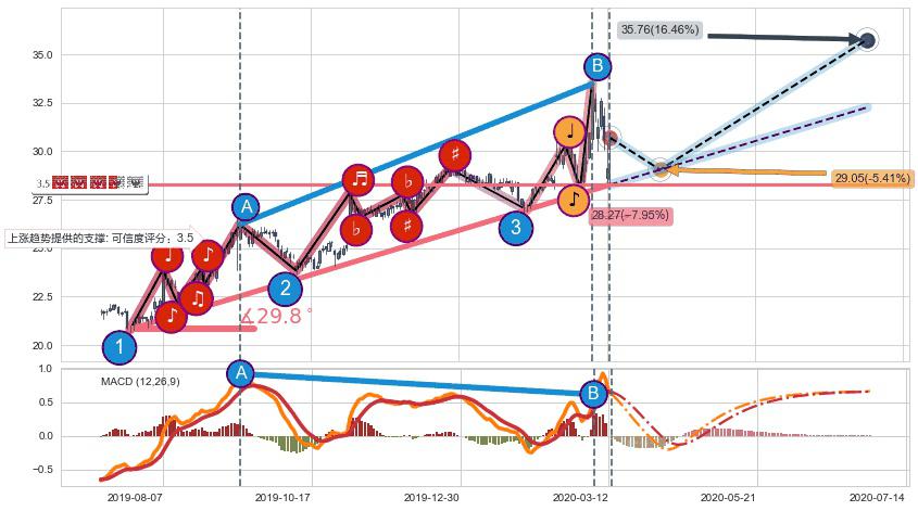 ➣ 预测:2020-07-14,【继续上扬】稳定目前上涨趋势的前提下,预测价格:35.76
