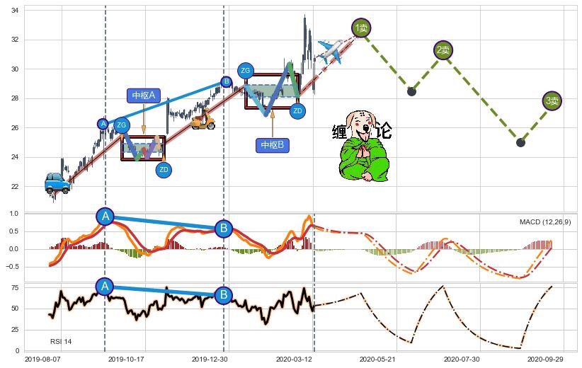 ➣ 【未完成】缠论 起点:2019-08-01, 完成第1中枢A,完成第2中枢B,到达2020-03-13