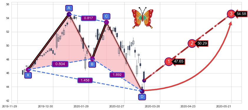 ➣ 已完成【蝴蝶】形态起点X: 2019-12-09, 终点D: 2020-03-12, 共65交易日
