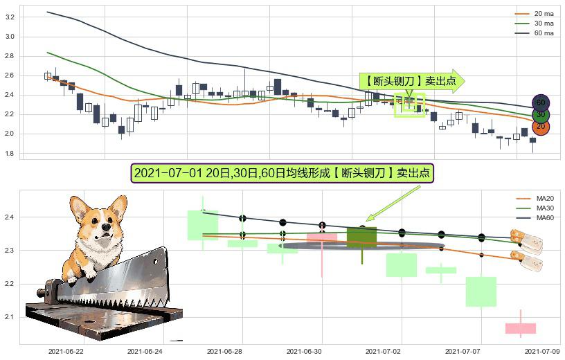 ⚀ 2021-07-01日显现 20日-30日-60日均线 【断头铡刀】卖出点 看空信号,后市看跌,卖出