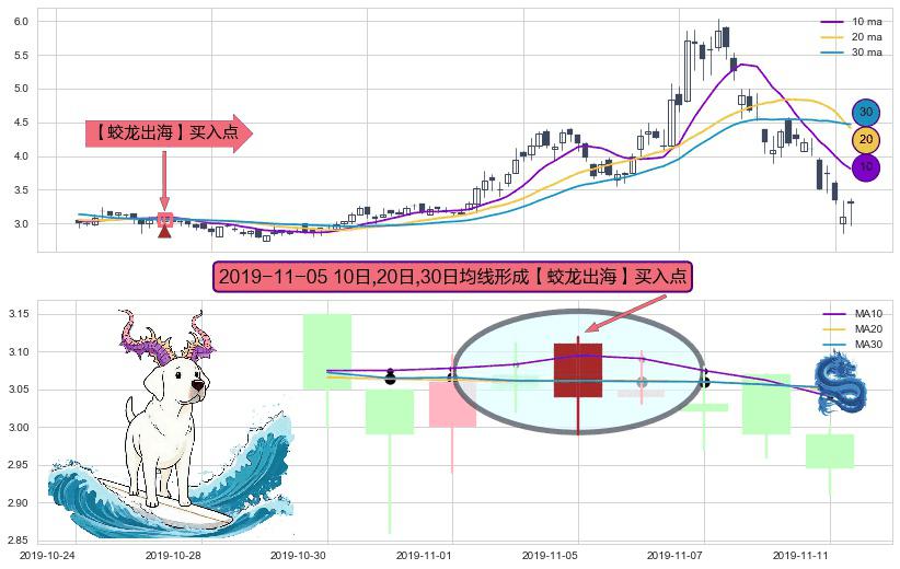 ⚀ 2019-11-05日显现 10日-20日-30日均线 【蛟龙出海】买入点 看多信号,后市看涨,买入