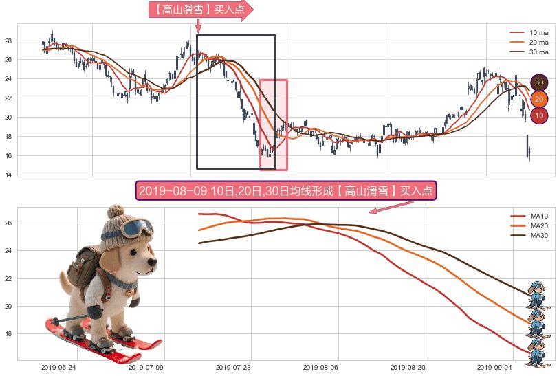 形态多维评估: ⚀ 2019-07-15日-2019-09-06日显现 10日-20日-30日均线 【高山滑雪】买入点 看多信号,后市看涨,买入