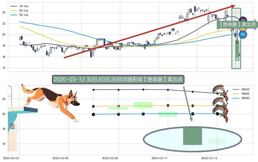 形态多维评估: ⚀ 2020-03-12日显现 30日-60日-90日均线 【绝命跳】卖出点 看空信号,后市看跌,卖出