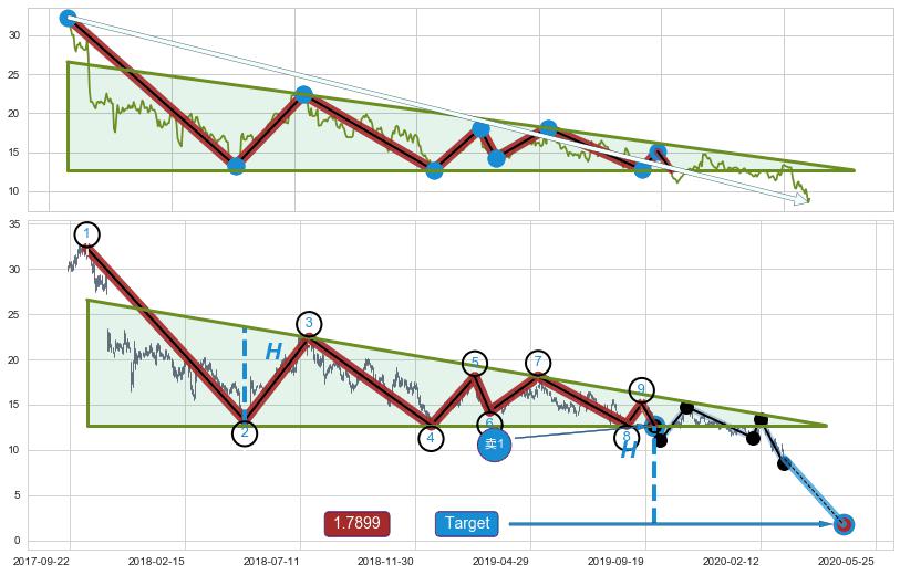 ➢ 【已确认突破】最后价格:9.03与最小【整理】第一目标价格→(2020-05-25: 1.7899 )相较: 下跌空间【较大】