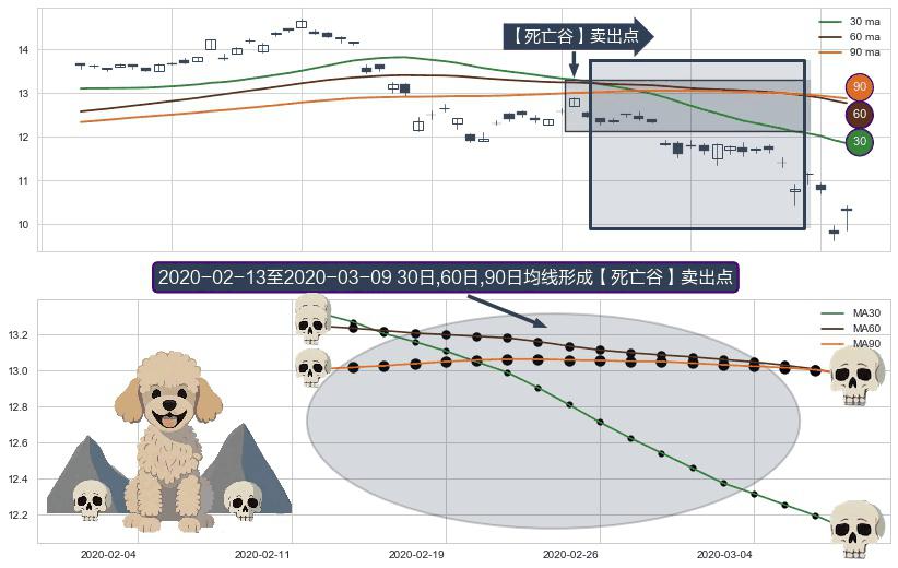 ⚀ 2020-02-14-日至2020-03-09-日显现 30日-60日-90日均线 【死亡谷】卖出点 看空信号,后市看跌,卖出