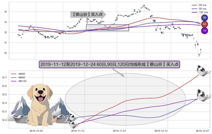 ⚀ 2019-11-13-日至2019-12-24-日显现 60日-90日-120日均线 【银山谷】买入点 看多信号,后市看涨,买入